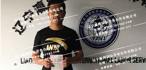 恭喜遼寧大連的于先生已成功入境,你的滿意就是我們******的工作動力,瀛洲國際全體員工祝你在國外工作順利,錢賺多多!